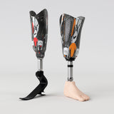 Motif Spacemoto Orange placé, adaptable aux dimensions exactes de votre prothèse tibiale, prothèse fémorale, prothèse bras et manchon, ou votre orthèse, corset, corset siège, cruro-pédieuse, releveur, prepreg.